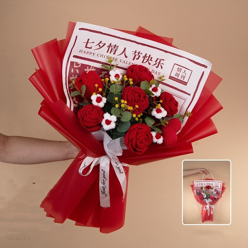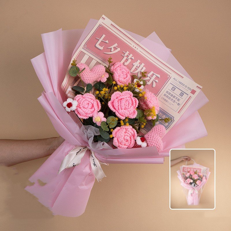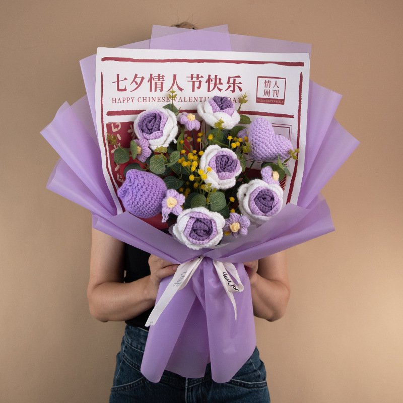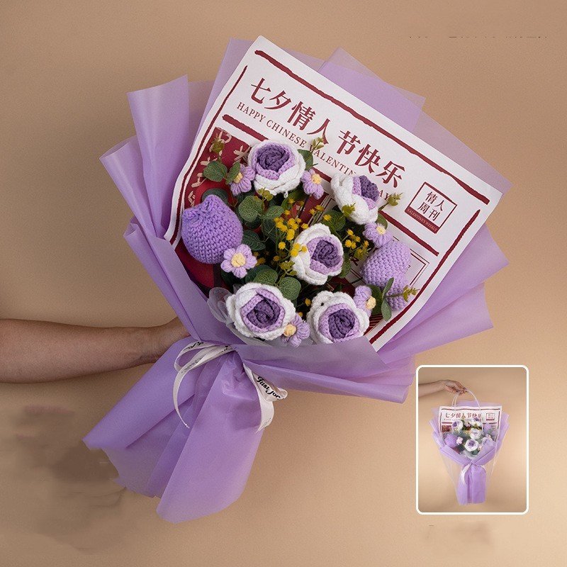 Color: Qixi red wool bouquet handbag lamp beads, Qixi gradually varied pink pink wool bouquet handbag lamp beads, Qixi gradient blue wool bouquet handbag lamp beads, Qixi gradient purple wool bouquet handbag lamp beads, Qixi pink wool bouquet handbag lamp beads