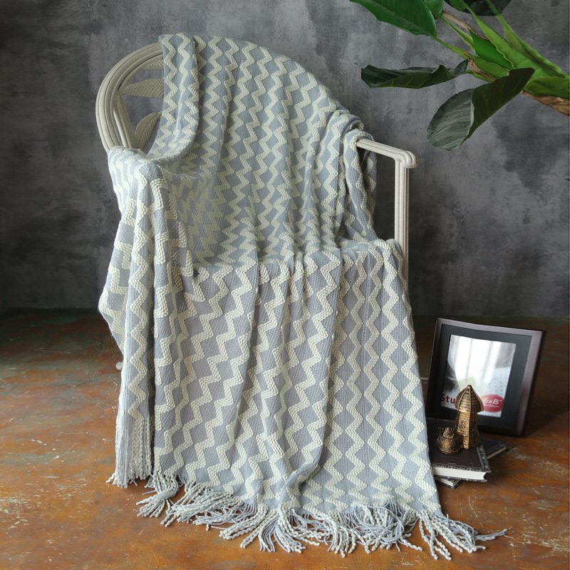Luxury Geometric Knitted Chenille Blanket – Soft European Style All-Season Throw (120×230 cm)